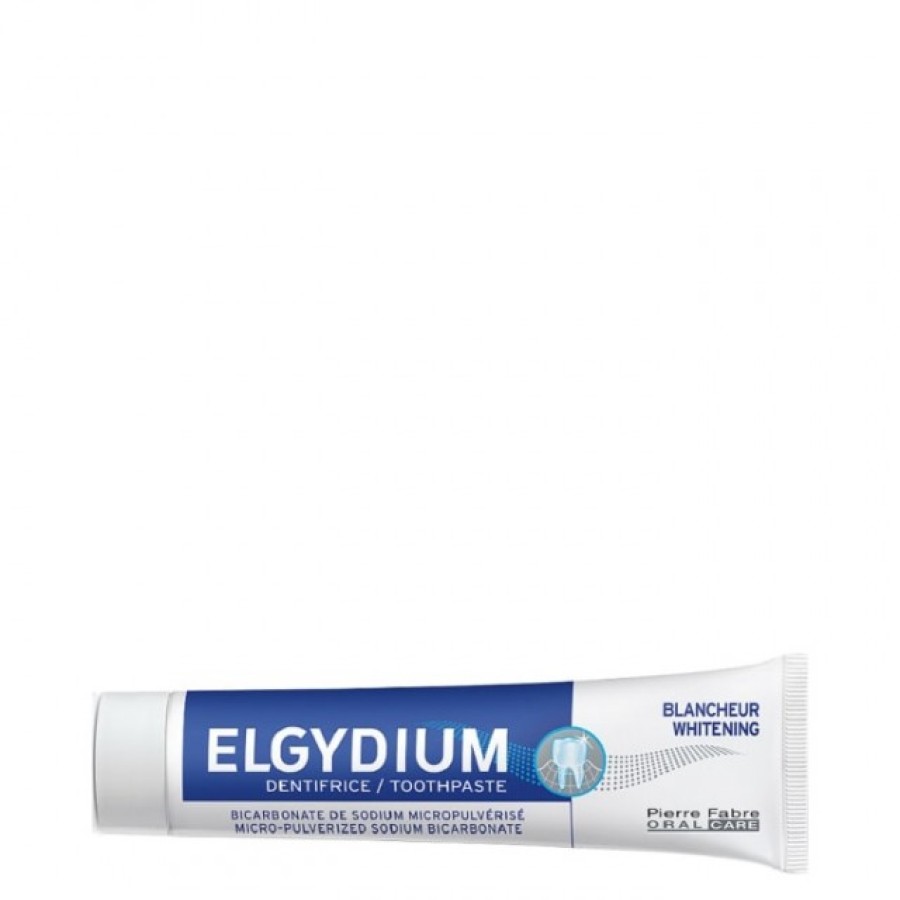 Η οδοντόπαστα ELGYDIUM WHITENING βοηθάει στην απομάκρυνση των επιφανειακών λεκέδων των δοντιών (που έχουν προκληθεί κυρίως από την κατανάλωση συγκεκριμένων τροφών, ποτών ή το κάπνισμα) χωρίς να φθείρει τα δόντια. Έχει γεύση μέντας και παρατείνει τη λευκότητα των δοντιών μετά από απομάκρυνση της πέτρας ή επαγγελματική λεύκανση.