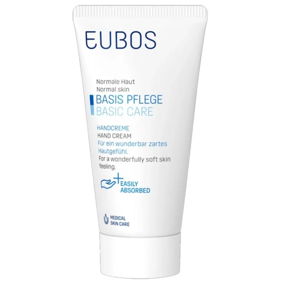 Η κρέμα χεριών EUBOS προσφέρει μία ευχάριστη και απαλή αίσθηση στα χέρια. Δεν έχει χρωστικές και συντηρητικά. Περιέχει πανθενόλη, εκχύλισμα χαμομηλιού και βιταμίνη E.