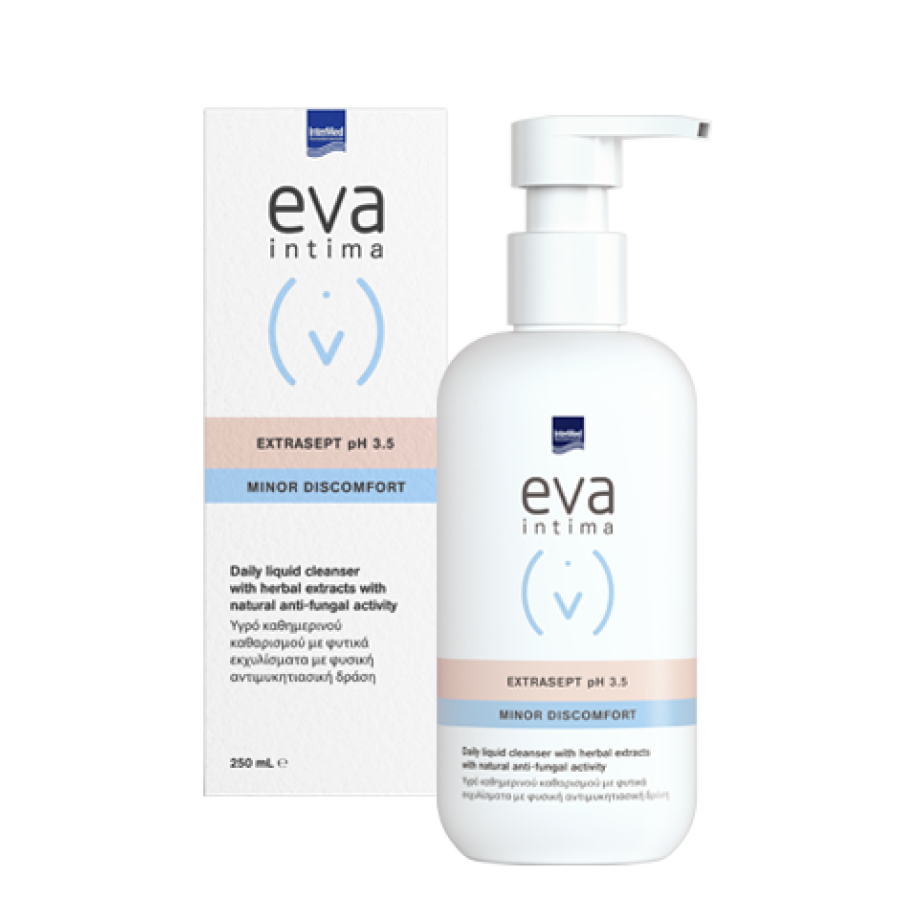 Το Eva Intima Wash Extrasept είναι απαλό υγρό καθημερινού καθαρισμού της ευαίσθητης περιοχής χωρίς σαπούνι, ειδικά σχεδιασμένο για να προσφέρει ανακούφιση και προστασία ιδίως σε περιπτώσεις λοιμώξεων ή υποτροπών οφειλόμενων σε μύκητες καθώς συνδυάζει την αντιμυκητιασική, αντιμικροβιακή και καταπραϋντική δράση βοτάνων όπως το θυμάρι,το φασκόμηλο και το αρκτιο τρίλοβο με την επουλωτική και αναπλαστική δράση του βοτάνου αζαντιράκτα .