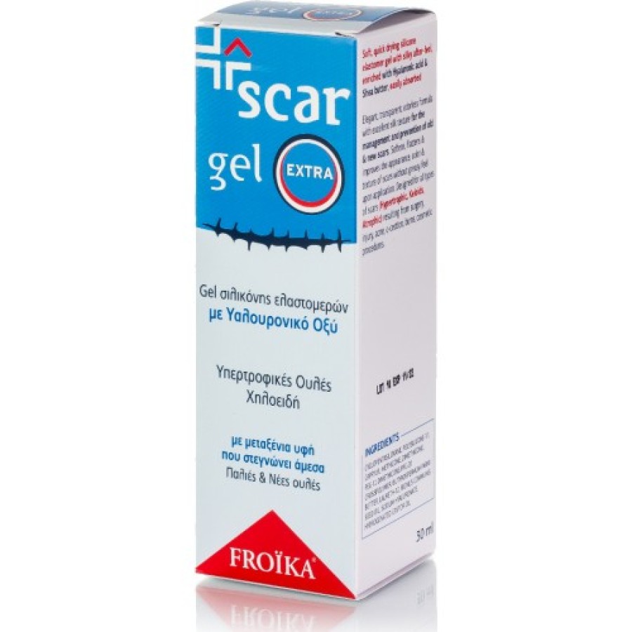 Το Froika Scar Gel Extra είναι ένα τζελ σιλικόνης ελαστομερών με υαλουρονικό οξύ και shea butter για υπετροφικές ουλές και χηλοειδή. Πρόκειται για μια διαφανή άοσμη φόρμουλα με καλλυντικές ιδιότητες που βελτιώνει την εμφάνιση των παλιών ουλών και προλαμβάνει την εμφάνιση νέων.