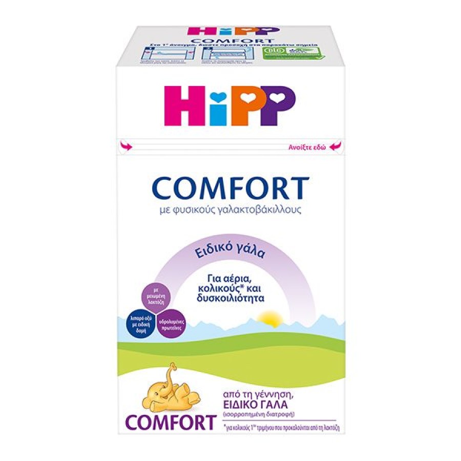 Ειδική σύνθεση για περιπτώσεις εμφάνισης αερίων, κολικών 1ου τριμήνου, που προκαλούνται από τη λακτόζη, και δυσκοιλιότητας. Το ειδικό γάλα HiPP COMFORT χάρη στην ειδική σύνθεσή του , είναι εξαιρετικά εύπεπτο, μαλακώνει τα κόπρανα και ρυθμίζει τις κενώσεις ενώ συμβάλλει στη βελτιωμένη χλωρίδα του εντέρου.