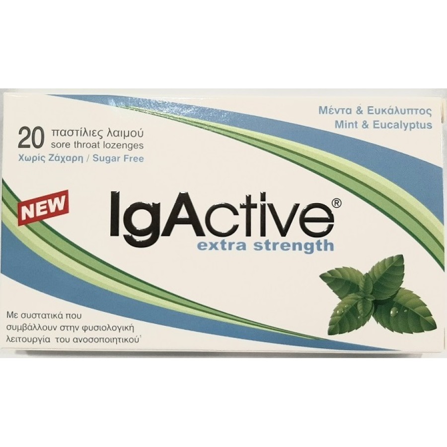 Igactive Παστίλιες Λαιμού Μέντα & Ευκάλυπτος Extra Strength Sugar Free IgActive 20 τμχ.