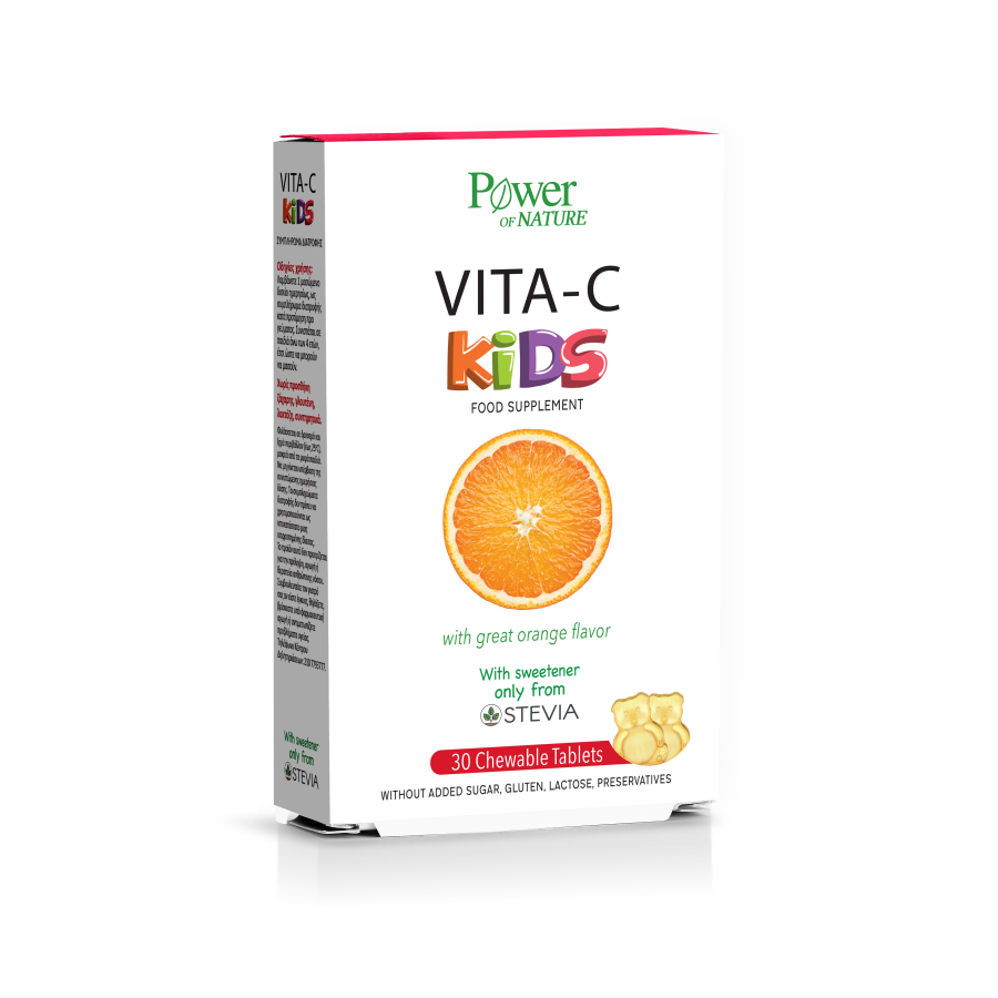 Κάθε δισκίο περιέχει την ιδανική ποσότητα βιταμίνης C, αφού είναι ειδικά μελετημένη για παιδιά. Αποτελεί φυσική ασπίδα προστασίας του οργανισμού τους από το κρυολόγημα και τις ιώσεις, διατηρεί τα ούλα και τα δόντια υγιή, συμβάλλει στην απορρόφηση του σιδήρου, τους χαρίζει ενέργεια και δύναμη. Η Vita – C for kids έχει φανταστική γεύση και θα γίνει η πιο αγαπημένη τους πορτοκαλένια συνήθεια.