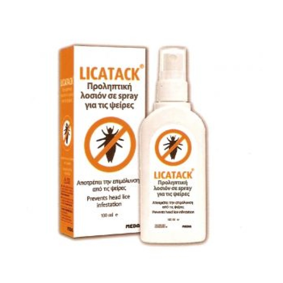 Για όσους κινδυνεύουν να κολλήσουν ψείρες κεφαλής, η προληπτική lotion σε μορφή spray Licatack® είναι εύκολη στη χρήση και κλινικώς αποδεδειγμένη ότι δρα για τουλάχιστον 7 ώρες ( μια πλήρη ημέρα στο σχολείο ή στη δουλειά) - και με πάνω από 30 δόσεις ανά συσκευασία μπορεί να χρησιμοποιηθεί ως μέρος της καθημερινής ρουτίνας.