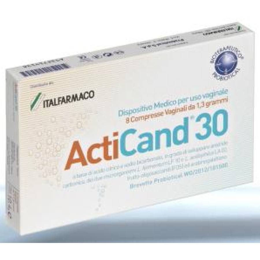 Το Acticand 30 είναι ένα ιατροτεχνολογικό προϊόν σε δισκία για κολπική χορήγηση που αποτελείται από πρεβιοτικές ίνες, Αραβινογαλακτάνη και φρουτοσακχαρίτες, Γαλακτοβάκιλλους L.FermentumLF10 και L. AcidophilusLA02, κιτρικό οξύ και όξινο ανθρακικό νάτριο.