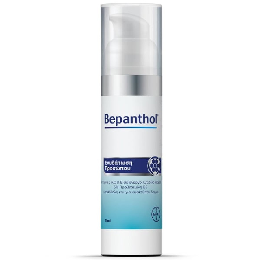 Η νέα Κρέμα Προσώπου Bepanthol® είναι κατάλληλη για την καθημερινή περιποίηση του δέρματος του προσώπου. Προσφέρει κλινικά αποδεδειγμένη ενυδάτωση και βοηθά στην ανάπλαση του δέρματος του προσώπου χάρη στη σύνθεσή της, με 5% Προβιταμίνη Β5, ισχυρό σύμπλεγμα βιταμινών A, C & E και λιποσώματα.