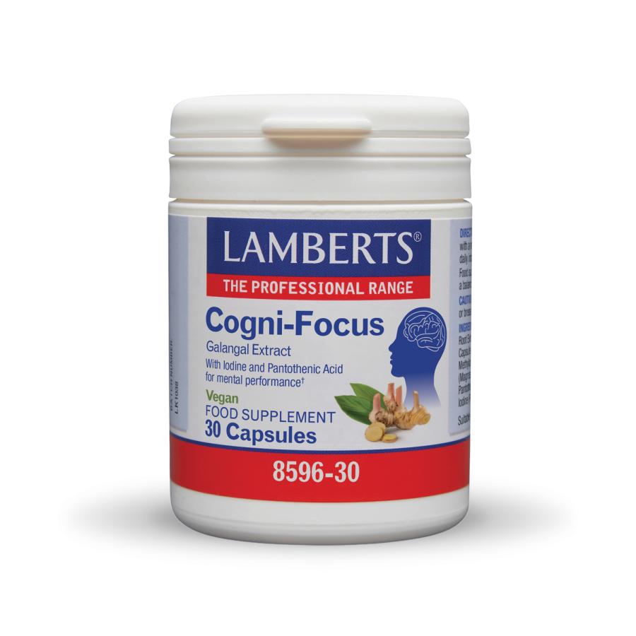 Το Cogni-Focus της Lamberts® αποτελεί ένα υψηλής ισχύος τιτλοδοτημένο εκχύλισμα Alpinia galanga. Κάθε ταμπλέτα παρέχει 300mg τιτλοδοτημένου εκχυλίσματος που προέρχεται από 3000mg αποξηραμένης ρίζας βοτάνου.