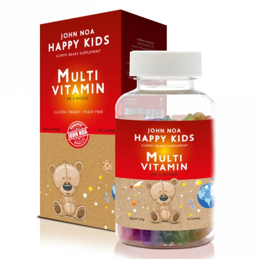 Το John Noa Happy Kids Multi Vitamin είναι ένα παιδικά πολυβιταμινούχο συμπλήρωμα σε μασώμενα ζελεδάκια σε 3 υπέροχες γεύσεις (πορτοκάλι, σταφύλι και φράουλα).