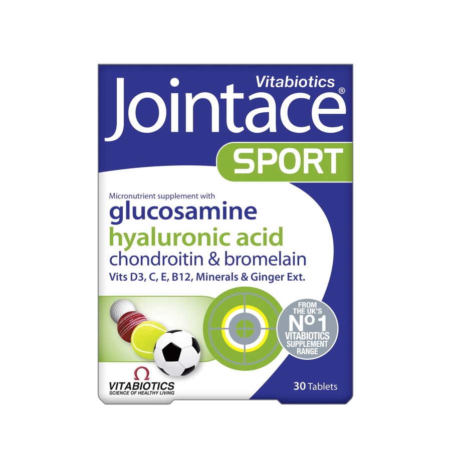 Το συμπλήρωμα διατροφής JOINTACE Sport της Vitabiotics περιέχει βρωμελαΐνη, υαλουρονικό οξύ, γλυκοσαμίνη και χονδροϊτίνη, συστατικά με εξειδικευμένη δράση στις αρθρώσεις. Η βρωμελαΐνη είναι ένα ένζυμο που εξάγεται από τον ανανά και συμβάλλει, σύμφωνα με μελέτες, στη μείωση της φλεγμονής και του πόνου στις αρθρώσεις. Το υαλουρονικό οξύ είναι ένα σημαντικό συστατικό του αρθρικού υγρού και του χόνδρου, που συμβάλλει στην ελαστικότητα των αρθρώσεων. Η διατήρηση των επιπέδων του μπορεί να υποστηρίξει την υγεία του χόνδρου και να διατηρήσει τη λίπανση και την κινητικότητα των αρθρώσεων κατά τη διάρκεια της άσκησης. Η θειική γλυκοσαμίνη και η θειική χονδροϊτίνη αποτελούν δομικά συστατικά του χόνδρου και συμβάλλουν στη διατήρηση της ακεραιότητας των αρθρώσεων. Στο JOINTACE Sport περιέχεται επίσης ginger, το οποίο έχει αντιφλεγμονώδεις και αντιοξειδωτικές ιδιότητες και συμβάλλει στη μείωση του πόνου. Οι βιταμίνες και τα μέταλλα συμβάλλουν στην υγεία των αρθρώσεων μέσω της εμπλοκής τους στα μονοπάτια της φλεγμονής, μέσω της αντιοξειδωτικής τους δράσης ή μέσω της συμβολής τους στην υγεία των οστών και το μεταβολισμό του ασβεστίου. Το JOINTACE Sport είναι ειδικά σχεδιασμένο για αθλητές και όσους γυμνάζονται.