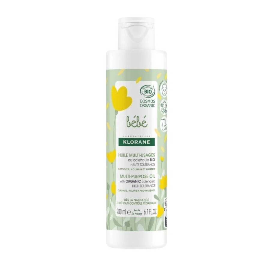 Το βρεφικό βιολογικό έλαιο πολλαπλών χρήσεων Klorane με 100% φυσικά συστατικά, θρέφει, προστατεύει, καταπραΰνει και ενισχύει το κανονικό ή ξηρό δέρμα του μωρού καθημερινά. Εμπλουτισμένο με βιολογική καλέντουλα και βιολογική φυτική γλυκερίνη, βοηθά στην εξισορρόπηση του μικροβιώματος του δέρματος και καθαρίζει απαλά το δέρμα χωρίς να χρειάζεται ξέπλυμα. Η μεταξένια υφή του είναι ιδανική για μασάζ και αφήνει ένα προστατευτικό φιλμ στο δέρμα του μωρού.