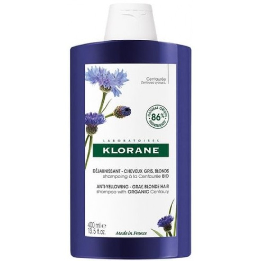 Το Σαμπουάν Klorane Centauree με εκχύλισμα βιολογικής κενταυρίδας, απευθυνόμενο στα λευκά ή γκρίζα μαλλιά, προσφέρει φίνες διακριτικές ασημένιες ανταύγειες και μειώνει το κιτρίνισμα. Η απαλή καθαριστική του βάση, σέβεται την ίνα της τρίχας και τα μαλλιά αποκαλύπτουν την λάμψη τους. Η βιολογική κενταύρια, καλλιεργείται με βραχεία αλυσίδα παραγωγής στη Νοτιοδυτιή Γαλλία, στα εδάφη της Pierre Fabre.