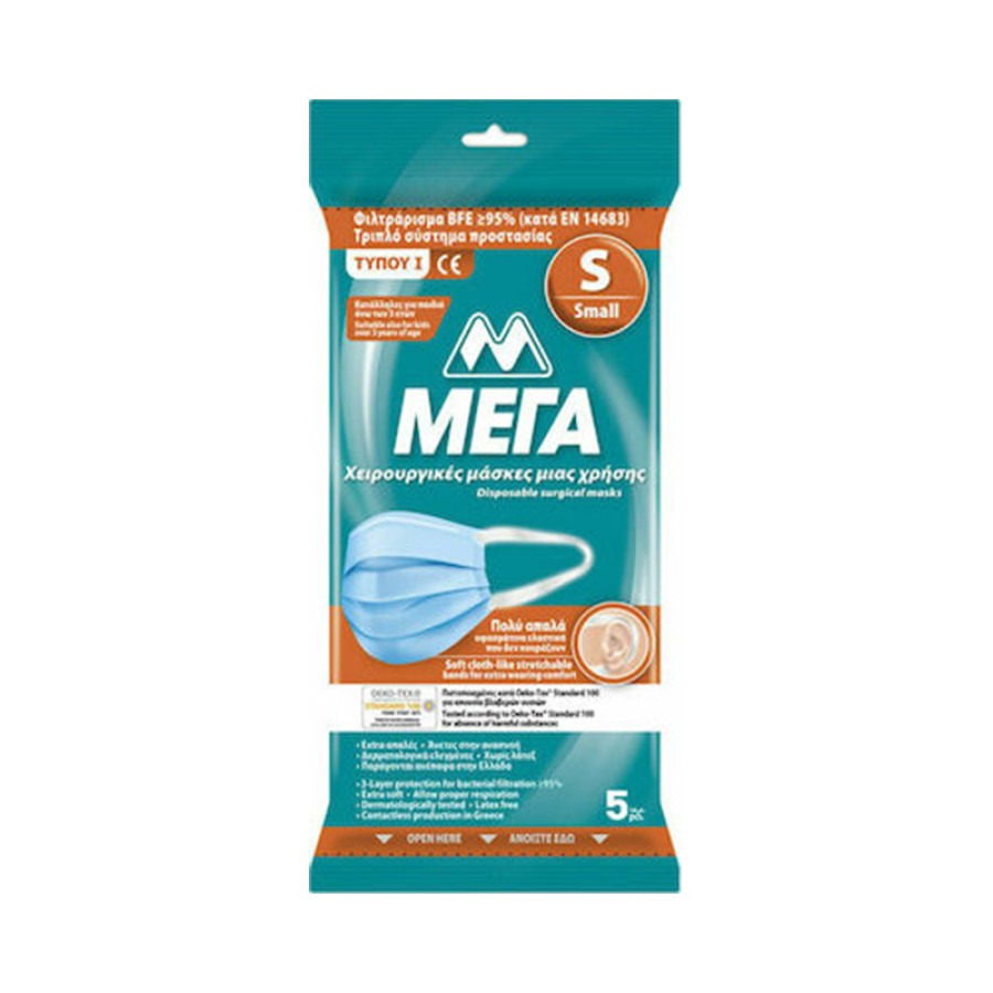 ΜΕΓΑ Χειρουργικές Μάσκες Μιας Χρήσης Small 5τμχ