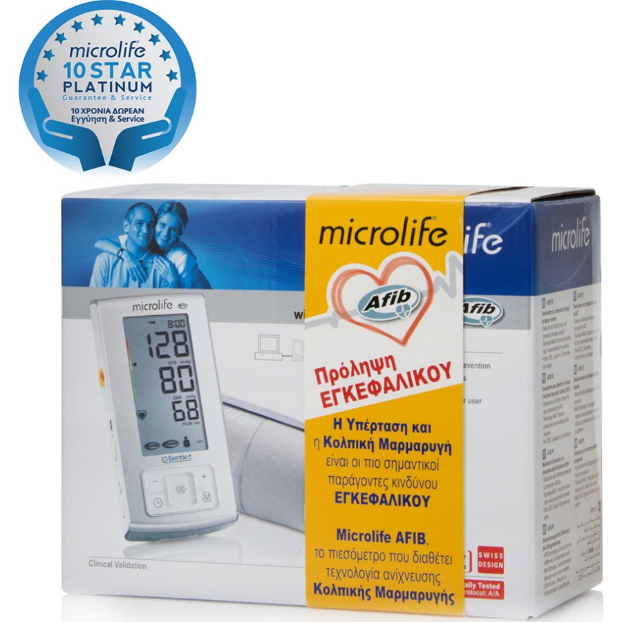 Το Microlife BP A6 PC ψηφιακό πιεσόμετρο μπράτσου είναι κλινικά ελεγμένο από την Βρετανική Εταιρεία Υπέρταση και παρέχει στον χρήστη αξιόπιστες μετρήσεις αρτηριακής πίεσης εύκολα και άμεσα. Το ψηφιακό πιεσόμετρο μπράτσου Microlife BP A6 PC σχεδιάστηκε σε συνεργασία με ιατρούς, είναι ένα αξιόπιστο ιατρικό όργανο για τη μέτρηση της αρτηριακής πίεσης στον άνω βραχίονα, εύκολο στη χρήση, ακριβές και συνιστάται για την παρακολούθηση της αρτηριακής πίεσης στο σπίτι και για ασθενείς με υπέρταση. Η Microlife πρωτοπορεί για ακόμη μια φορά ενσωματώνοντας στο Microlife BP A6 PC ψηφιακό πιεσόμετρο μπράτσου την Τεχνολογία AFIB μια παγκοσμίως κορυφαία τεχνολογία για ανίχνευση κολπικής μαρμαρυγής με υψηλή ακρίβεια (ευαισθησία 98%- ειδικότητα 92%). Η Κολπική Μαρμαρυγή είναι σημαντικός παράγοντας πρόκλησης εγκεφαλικού επεισοδίου. Ενσωματώνοντας τον ανιχνευτή κολπικής μαρμαρυγής, η Microlife ακολουθεί τις τελευταίες οδηγίες της Ευρωπαϊκής Εταιρείας Υπέρτασης (ESH) για την οικιακή παρακολούθηση της αρτηριακής πίεσης και για ασθενείς με υπέρταση. Κλινικά ελεγμένο σε εγκύους και σε ασθενείς με προεκλαμψία, διαβήτη, νεφρική νόσο, παχυσαρκία και κολπική μαρμαρυγή.