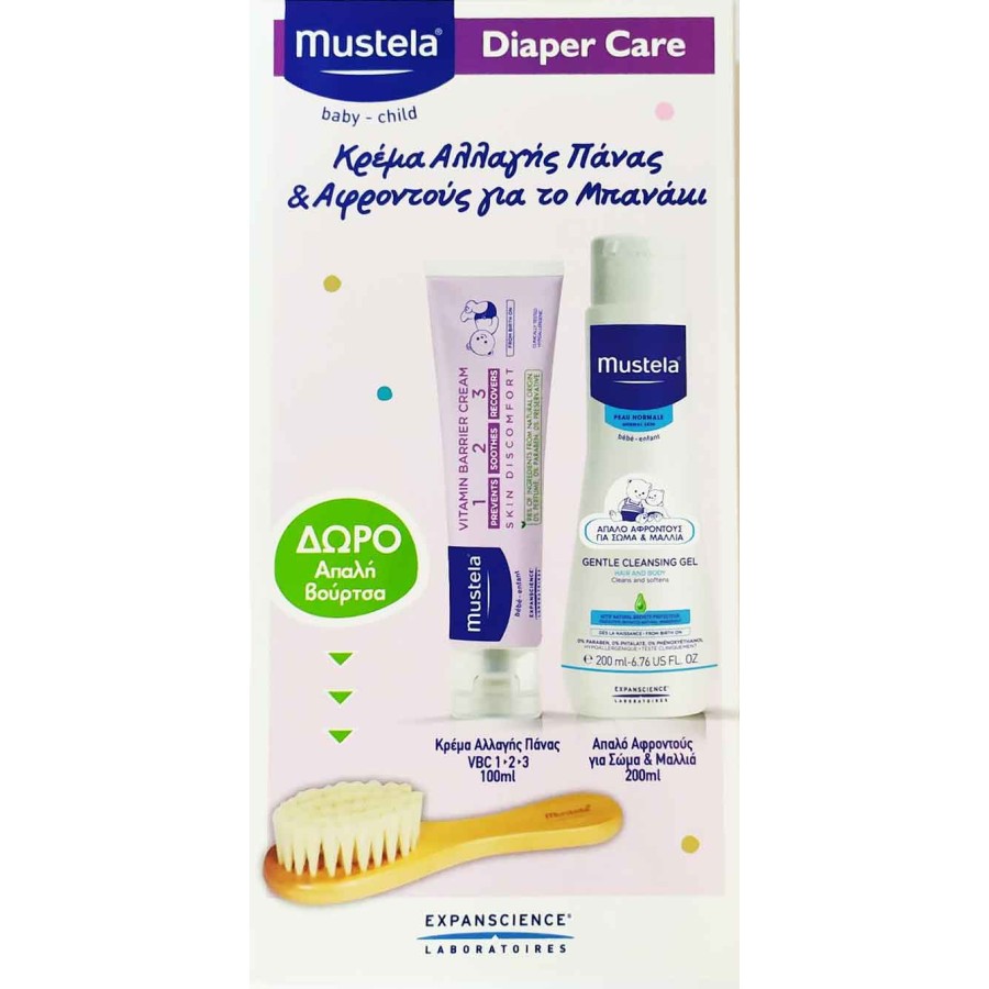 Mustela Set Barrier Cream 1-2-3 100ml + Cleansing Gel 200ml + Δώρο Απαλή Βούρτσα