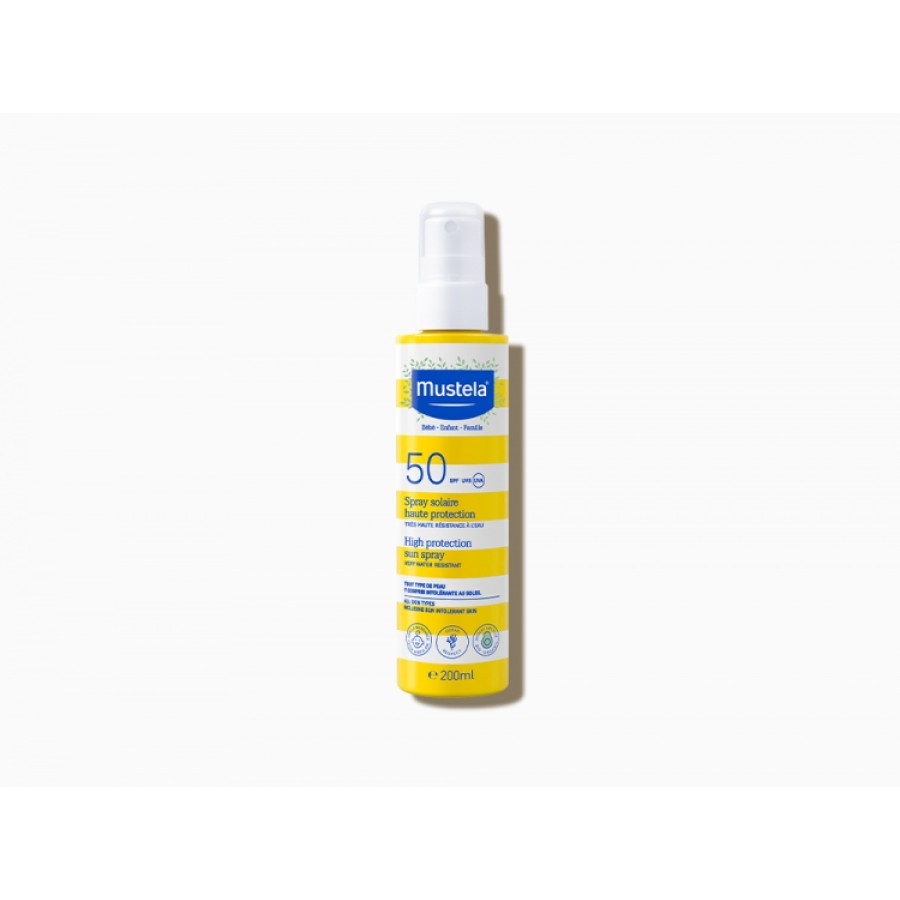 Αυτό το Αντηλιακό Σώματος & Προσώπου υψηλής προστασίας, Mustela High Protection Sun Spray με δείκτη SPF 50, προστατεύει το ευαίσθητο, το μη ανεκτικό, το ατοπικό και το φωτοευαίσθητο δέρμα από τις ακτίνες UVΑ και UVB.