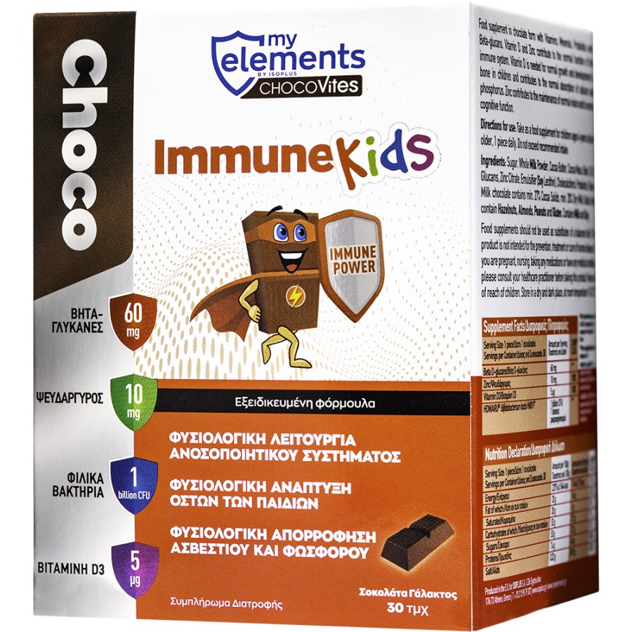 Ο Ψευδάργυρος συμβάλλει στηδιατήρηση της φυσιολογικής όρασης και στη φυσιολογική γνωσιακή λειτουργία. Η Βιταμίνη D συμβάλλει στη διατήρηση της φυσιολογικής κατάστασης των δοντιών, των οστών, και της φυσιολογικής λειτουργίας των μυών. Συμπλήρωμα διατροφής σε μορφή σοκολάτας με Βιταμίνες, Μέταλλα, Προβιοτικά και Βητα-γλυκάνες.