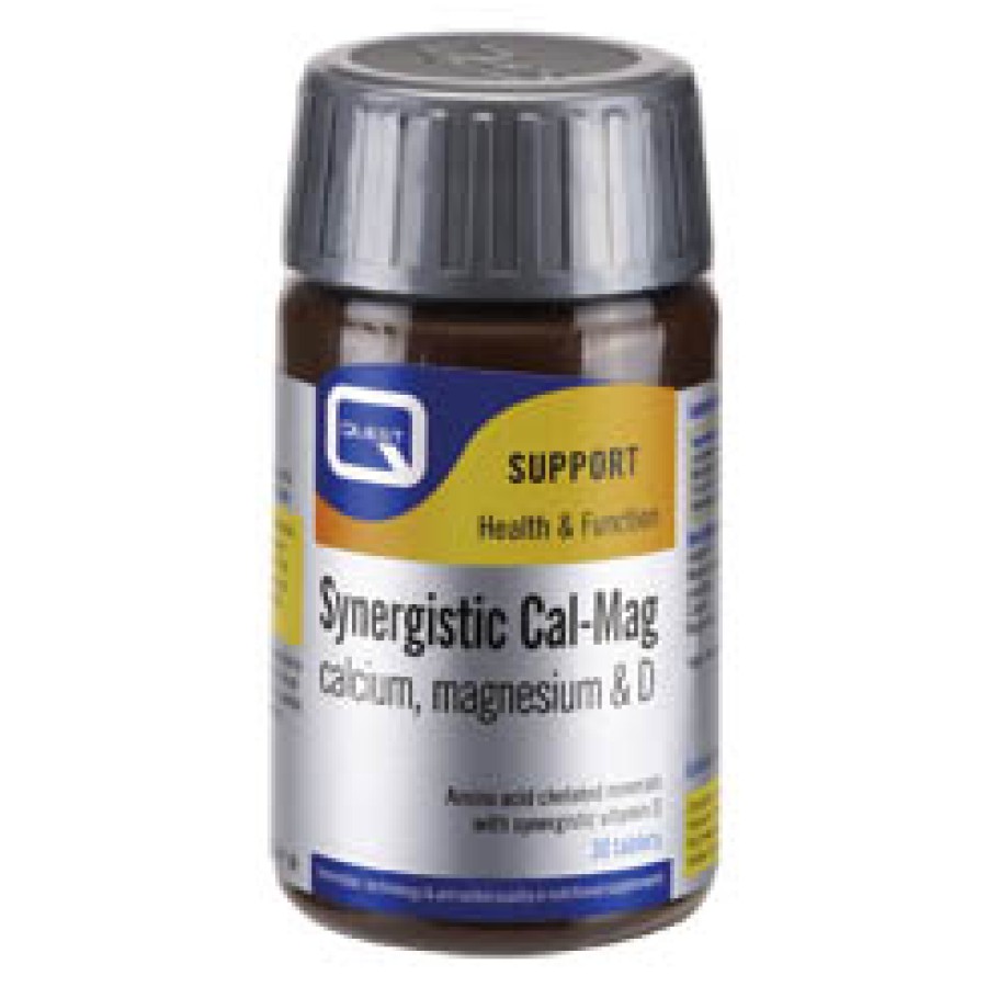 Το συμπλήρωμα διατροφής Synergistic Cal-Mag της Quest παρέχει στον οργανισμό ασβέστιο, μαγνήσιο και βιταμίνη D, που αποτελούν τα σημαντικότερα συστατικά για την υγεία των μυοσκελετικού συστήματος. Ως συστατικά της διατροφής το ασβέστιο και το μαγνήσιο είναι απαραίτητα για την καλή λειτουργία και υγεία των οστών και των μυών. Ιδιαίτερα το μαγνήσιο μπορεί να ανακουφίσει από κράμπες και συσπάσεις των μυών. Επιπλέον, το ασβέστιο και το μαγνήσιο βοηθούν στην καλή ανάπτυξη των μαλλιών και των νυχιών.