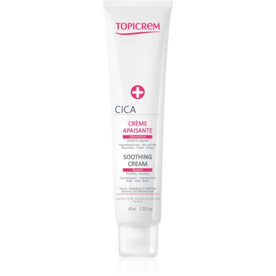 Το CICA CREAM έχει σχεδιαστεί ειδικά για ερεθισμούς του δέρματος για όλη την οικογένεια (πληγές, ρωγμές, εξάνθημα από πάνα, ακολουθώντας δερματολογικές διαδικασίες ...). Η σύνδεση χαλκού - ψευδαργύρου - μαγγανίου και υαλουρονικού οξέος προάγει την επιδερμική αποκατάσταση και μειώνει τον κίνδυνο βακτηριακού πολλαπλασιασμού. Η γλυκερίνη ενυδατώνει και προστατεύει το φράγμα του δέρματος. Η υφή της είναι εύκολη στην εφαρμογή, μη λιπαρή - μη κολλώδης και διαφανής στην εφαρμογή. Το δέρμα επισκευάζεται και βρίσκει άνεση και χαλάρωση. Υψηλά πρότυπα ασφάλειας: παρασκευάστηκε για βρέφη και παιδιά, εύθραυστο δέρμα, δοκιμασμένο παιδιατρικά, δερματολογικό και γυναικολογικό έλεγχο, υποαλλεργικό, απαλλαγμένο από άρωμα, χωρίς παραμπέν. Άμεση ανακούφιση και γρήγορη επανόρθωση. Εφαρμόστε 1 έως 2 φορές την ημέρα σε προηγουμένως καθαρισμένο και αποξηραμένο δέρμα. Πρόσωπο, σώμα και εξωτερικοί βλεννογόνοι.