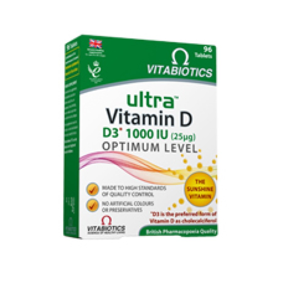 Το Ultra Vitamin D της Vitabiotics είναι ένα μοναδικό προϊόν που παρέχει 25μg (1000IU) βιταμίνης D ανά ταμπλέτα. Το Ultra Vitamin D αποτελείται 100% από D3 που είναι η δραστική μορφή της D που παράγει και ο ίδιος ο οργανισμός. Η βιταμίνη D παίζει σημαντικό ρόλο στο σώμα και είναι απαραίτητη για τη γενική καλή υγεία. Η λήψη βιταμίνης D έχει σύμφωνα με μελέτες οφέλη στα οστά και τα δόντια, το ανοσοποιητικό, τον εγκέφαλο και τη διάθεση, το μυϊκό, το νευρικό και το καρδιαγγειακό σύστημα.